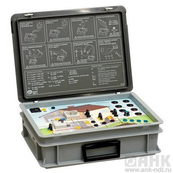 Стенд выполнен в виде переносного пластикового кейса с габаритными размерами 405 x 300 x 140 мм и массой 3,6 кг, оснащен отдельным кабелем питания, вспомогательным проводом «банан»-«банан» 0,7 м, перемычками (4 шт.), инструкцией по эксплуатации и гарантийным талоном.