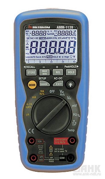 Промышленный водонепроницаемый True RMS прецизионный мультиметр АММ-1139 обеспечивает безопасность и точность измерений в любых условиях и предоставляют пользователю максимум возможностей. Прибор имеет многофункциональный ЖКИ высокого разрешения с подсветкой и аналоговой шкалой, а так же пик-детектор, функцию регистратора и режим измерения токовой петли.