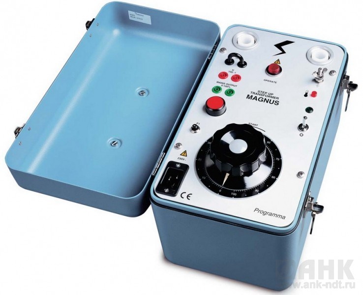 Повышающий трансформатор MAGNUS™ компании Megger позволяет получить кривые намагничивания измерительных трансформаторов быстро и легко. МАГНУС используется для размагничивания сердечников трансформаторов тока и проведения испытаний по определению коэффициента трансформации трансформаторов напряжения. Несмотря на небольшой вес (всего лишь 16 кг) MAGNUS обеспечивает ток 1 А при напряжении 2,2 кВ. Двуручное управление повышает безопасность персонала. В стандартной комплектации повышающий трансформатор МАГНУС поставляется со специальным высоковольтным кабелем и прочным кейсом для транспортировки.