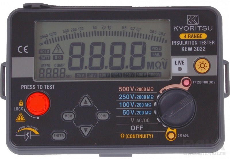 - Диапазон измеряемого сопротивления: 0 ~ 4/ 40/ 400/ 2000 МОм