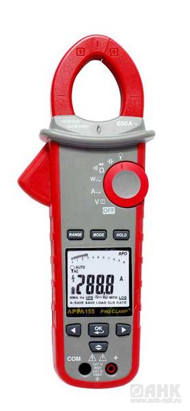 Многофункциональные электроизмерительные клещи-ваттметры (TRMS) c поддержкой преобразователя тока для измерения тока 0,1 - 3000 А (±3%) и автоматическим пересчетом показаний в амперах (опция APPA sFlex-10T/- APPA sFlex-18T). Автодетектирование типа сигнала AC/DC (перем./ пост.). Измерение I пер. тока (ACA): 0,1…600 А (±1,5%, максимальное разрешение 0,01А), пусковой ток (INRUSH), U пер и пост 0,01…1000 В (DCV ± 0,7%, макс. разреш. 0,01 В), мощность: 0,001…600 кВт (макс. разреш. 1 Вт), коэф. мощн.: -1,00…1,00, коэф. гармоник (THD%): 0,1…100% (до 25-й включительно), чередование фаз, сопротивл. до 100 кОм (разрешение 0,1 Ом), частота 20 Гц…10 кГц (напряж. / ток; разреш. 0,01 Гц), прозвон цепи (до 30 Ом) со световой сигнализацией, проверка диодов (p-n переходов), изм. емкости до 4 мФ (± 1,9%, максимальное разрешение 1нФ). Режим удержание, MIN/MAX/СРЕД, пиковые значения. Встроенный цифровой регистратор – 9999 ячеек, внутренняя память - 1000 результатов, ЖКИ с автоподсветкой 5 или 4 разряда (10.000/ 4.000), 3 изм/с, графическая шкала (50 сегментов), макс. диаметр 33 мм (шина 45х10 мм), ударопрочное исполнение (1,3 м), питание 6х 1,5 В, автовыкл. питания, масса 540 г. Навигация в меню с помощь клавиш, подсветка места измерения, бесконтактный датчик фазного напряжения (VoltSeek), фильтр НЧ, 103 х 243 х 55 мм, безопасность кат. IV 600 В/ кат. III 1000 В.