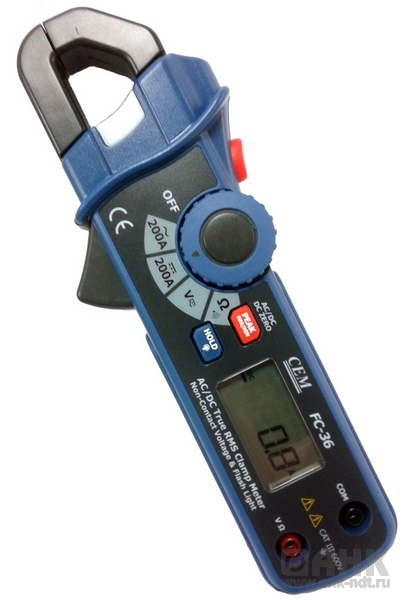 Компактные токовые клещи FC-36 предназначены для измерения постоянного и переменного тока до 200А. Также клещи имеют бесконтактный детектор напряжения и фонарик.