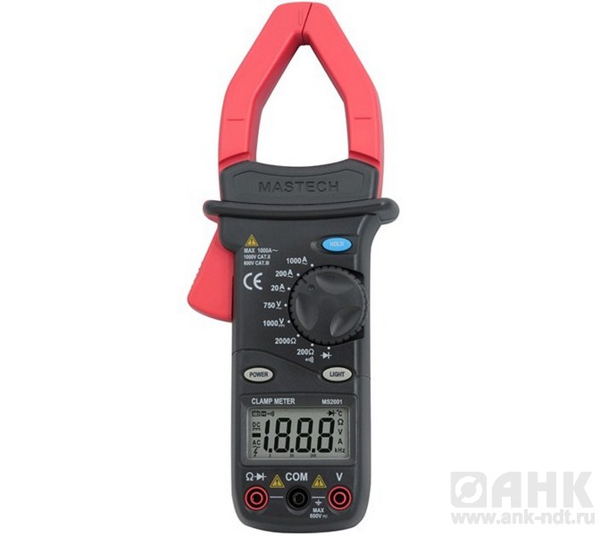 Токоизмерительные клещи MS2001 предназначены для измерения силы переменного тока, постоянного и переменного напряжения и сопротивления.