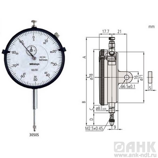 Описание индикаторов часового типа серии 3 (цена деления 0,01 мм)