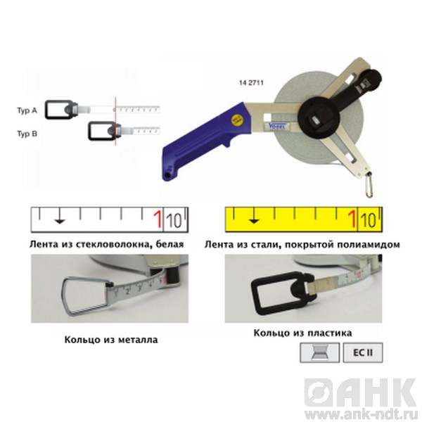 Мерная лента в 3-х угловой алюминиевой раме с рукояткой, из стекловолокна или покрытой полиамидом стали от 20 до 50 м, предназначена для измерения различных величин.