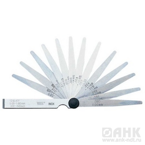 Щупы Vogel из нерж стали конические в наборах от 8 до 20 шт в наборе, диапазон от 0,05 - 0,5 мм до 0,05 - 1,0 мм, предназначены для измерения и регулировки зазоров и представляют собой пластинки, различные по форме, с нанесенными на них размерами (толщиной самой пластинки). Принцип проведения измерительных операций довольно прост: в зазор между поверхностями детали или изделия по очереди вставляются щупы разной толщины – от меньшего к большему; размер зазора равен толщине пластинки, которую беспрепятственно поместили туда последней.