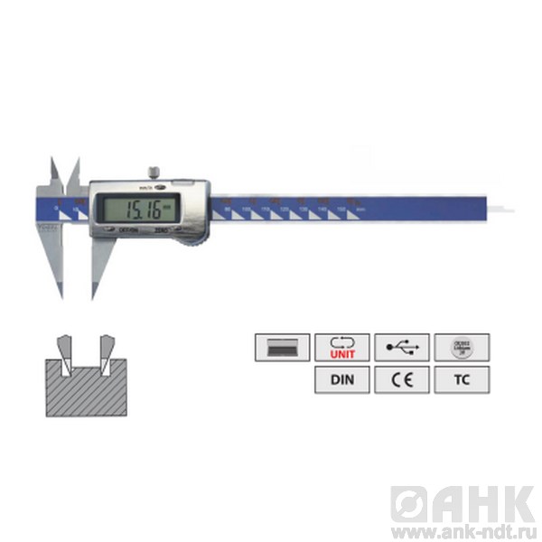 Штангенциркуль Vogel цифровой с острыми губками диапазон измерений от 0-150х0,01 мм, с выводом данных mini-USB, с плоским глубиномером, предназначен для измерения и разметки размеров – внешних и внутренних. Конструкция прибора довольно проста: представлена двумя измерительными поверхностями: базовой, соединенной со штангой-линейкой, и дополнительной, сопряженной с рамкой, которая движется по линейке, между которыми выставляется размер. На линейке имеются деления, а на рамке – установленный или выгравированный нониус.
