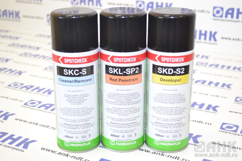 Spotcheck SKD-S2 - сорбционный проявитель ,представляющий собой белый сорбент, диспергированный в быстросохнущих растворителях и поглащающий индикаторный пенетрант.