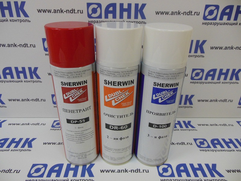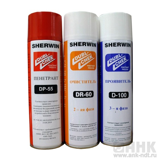 Возможна поставка наборов для капиллярной (цветной) дефектоскопии SHERWIN как комплектами, так и отдельно: очистителя DR-60, проявителяD-100 или пенетранта DP-55.