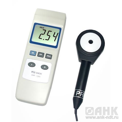 Люксметр PCE-UV34 для измерения уровня УФ облучения, сенсор UV, батарея, приборная сумка, руководство пользователя на русском языке.