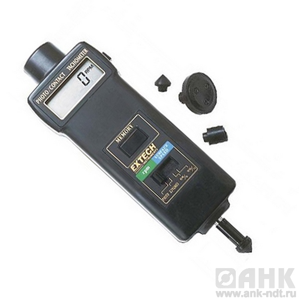 Комбинированный контактный фототахометр Extech 461895 этот прибор бъединяет контактные и бесконтактные модели для применения во всех сферах. Применение светового луча с диапазоном идеального измерения на расстоянии до 150 мм от цели. Функция сохранения максимальных и минимальных значений.