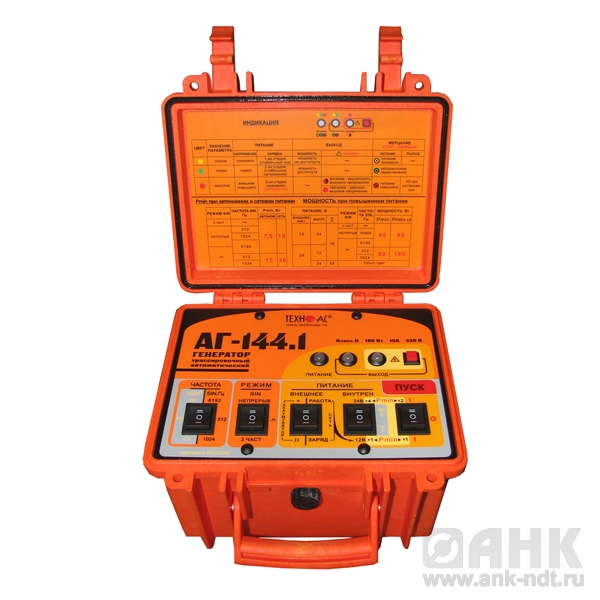 Генератор трассировочный автоматический АГ-144.1 предназначен для создания распространяющихся сигналов в трассах скрытых коммуникаций при активных методах трассопоиска (электромагнитном и акустическом). Прибор создает в исследуемой коммуникации переменный синусоидальный ток необходимый для определения ее местоположения или звуковые импульсы при помощи ударного механизма.