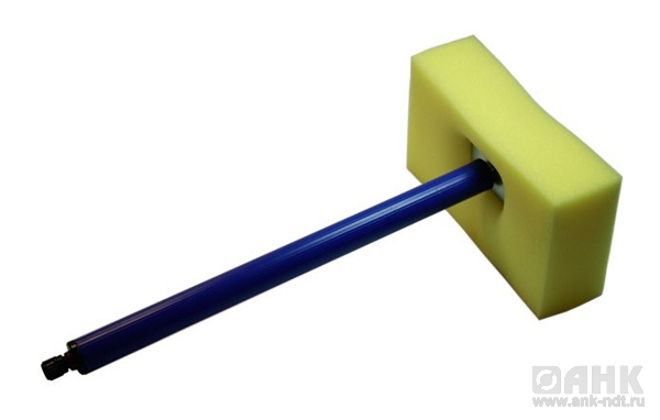 Дефектоскоп предназначен для контроля пористости, непрокрасов и других нарушений сплошности защитных диэлектрических покрытий металлических изделий приложением к покрытию низковольтного напряжения через губку, смоченную жидким электролитом с высокими проникающими свойствами.