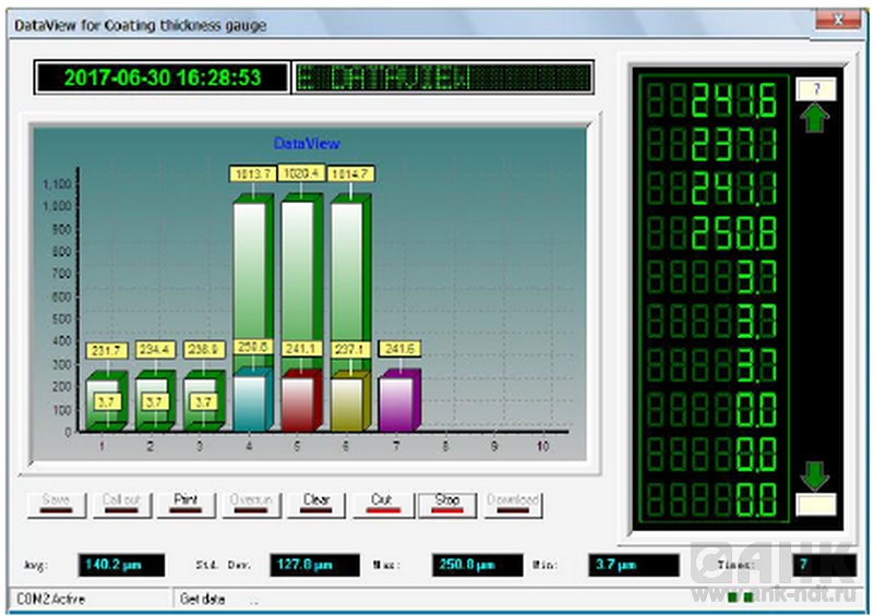 Измерение толщины неэлектропроводящего покрытия на немагнитном металлическом основании, например: резина, пластик, краска на алюминии, меди, цинке, олове.