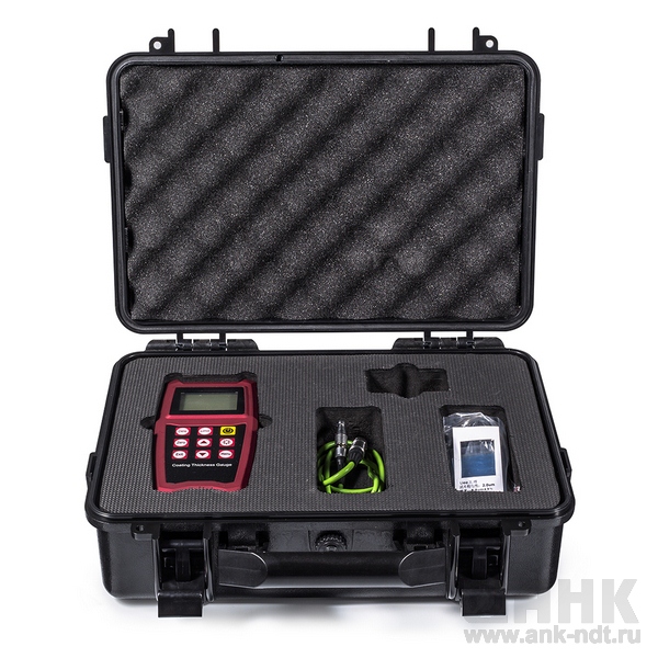 электронный блок, 1 датчик (Fe или NFe), 1 подложка (Fe или NFe), программное обеспечение и USB кабель, 5 настроечных образцов, инструкция по эксплуатации, Сертификат качества, 2 батарейки AA, упаковочный лист, гарантийный талон