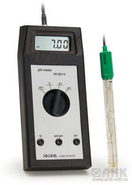 HI 8014 портативный рН-метр/ОВП-метр (pH/ORP) выполняет измерения pH с ручной температурной компенсации.