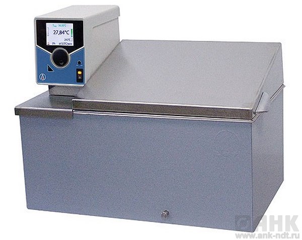 Прибор модификации LOIP LT-424b состоит из погружного термостата-циркулятора LOIP LT-400 и рабочей ванны с односкатной откидной крышкой.