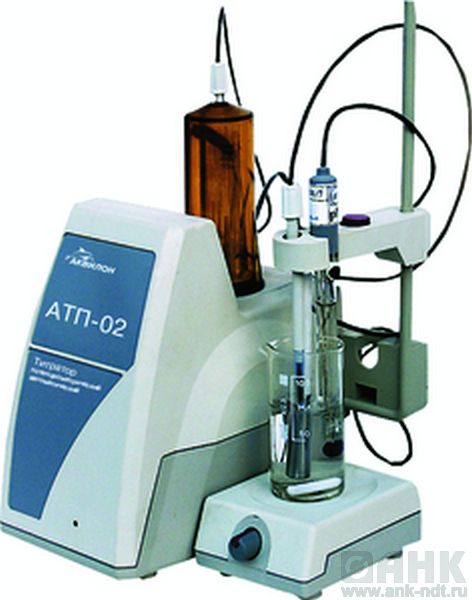 АТП-02 – автоматический высокоточный потенциометрический титратор. Прибор отвечает всем требованиям, предъявляемым к данному классу оборудования: непрерывная и дискретная подача титранта (диапазон от 0,1 до 36 мл/мин – при объёме дозирующего устройства 20мл; и от 0,25 до 90 мл/мин – при объёме дозирующего устройства 50мл), автоматическое изменение скорости подачи по мере приближения к точке эквивалентности или заданной точке и т.д.