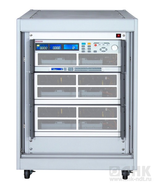 - Аналог АКИП-1306. Ток до 80 А, напряжение до 500 В, мощность до 2,4 кВт, масса 38,8 кг. Состав: 2 блока и подкатной шкаф 15U, 45 кг