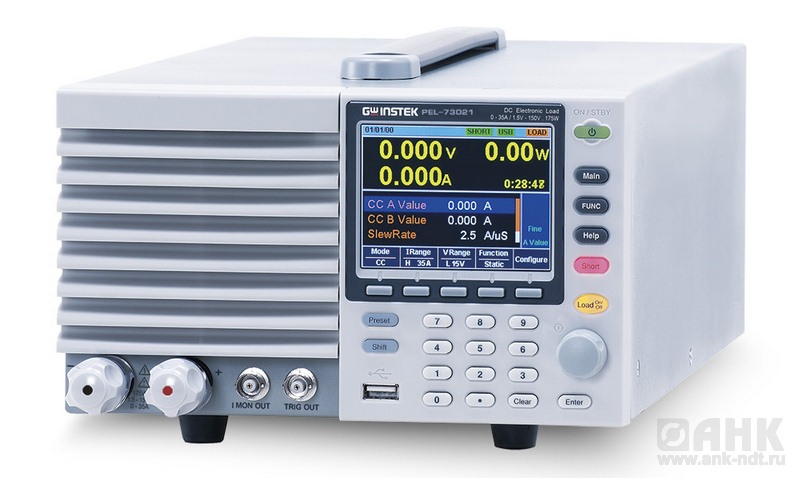 • Аналог PEL-73021. Отличия: ток до 70 А, пост. напряжение до 150 В, мощность до 350 Вт. Масса 7 кг, габариты: 214,5 х 124 х 400 мм