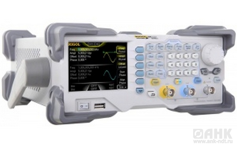 • Генератор сигналов универсальный. 2 канала. Диапазон: 1 мкГц...60 МГц (Sin). Амплитуда вых. сигнала до 10 Впп; 160 встроенных форм сигналов.