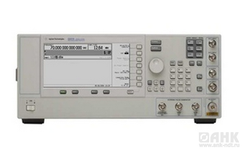 Генератор ВЧ E8257D-520: Частотный диапазон 250 кГц … 20 ГГц; Высокое разрешение выходгой частоты 0,001 Гц; Высокий уровень выходной мощности -20 … +10 дБмВт (опция); Разрешение 0,01 дБ; Погрешность установки уровня 0,6 ... 2,5 дБ; Низкий уровень фазовых шумов; Интерфейс GPIB; Опции аналоговой модуляции: аттенюатор и модуляции АМ, ЧМ, ИМ, ГКЧ; Масса 22 кг.