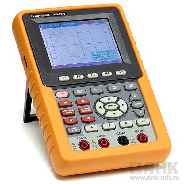 Осциллограф - мультиметр АСК-2018, полоса 20 MHz, 1 канал, цветной ЖКИ, дискретизация 100 Мвыб/сек, длина записи 6 кБт/кан., вер. разр. 8 бит, разв. по верт. 5 мВ...5 В/дел., по гор. 5 нс...100 с/дел., 20 автоизмерений, курсорные измерения, видео синхр. с выбором строки, макс. вход. напряж. 400 Впик, встроенный мультиметр, USB интерфейс, бесплатное (в комплекте поставки) программное обеспечение AKTAKOM DSO Soft и AKTAKOM DSO-Reader Light с расширенной обработкой сигнала, включая фильтрацию; программное прореживание; БПФ (10 типов окон); 3 типа персистенции; сохранение в форматы AUL, *bmp, *wmf, *emf; масштабирование; настройку цветовых схем; курсорные и автоизмерения, аккумуляторное питание, размеры 180x115x40 мм, масса 645 г.