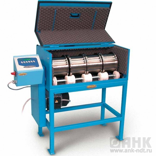 Используется для определения сопротивления заполнителей мокрому истиранию. Представляет собой прочную стальную раму с электроприводом, на которую могут устанавливаться цилиндры из нержавеющей стали следующих размеров: