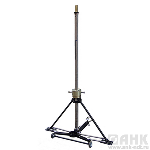 Прибор состоит из основания, на котором закрепляется в вертикальном положении направляющая штанга. В нижней части штанги расположена регистрирующая шайба, измерительная шкала и пружинный механизм с тягами, на конце которых установлены имитаторы шин. В верхней части расположены ударный груз, механизм сброса груза и устройство регулирования пружинного механизма.