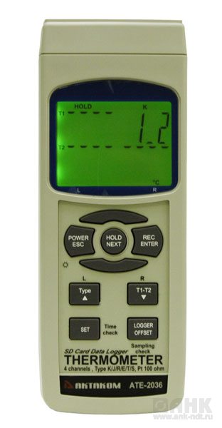 Многоканальный измеритель температуры АТЕ-2036 предназначен для одновременного измерения температуры по четырем каналам при помощи термопар K, J, T, E, R и S типа или по двум каналам при помощи термосопротивлений платинового типа. В измерителе температуры АТЕ-2036 имеется возможность сохранения измеренных данных на SD-карту в формате Excel в режиме реального времени без!!! использования специального программного обеспечения.