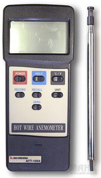 Современная модель термоанемометра с возможностью температурных измерений, работающая по принципу охлаждения воздушным потоком нагретой нити. Датчик — миниатюрный стеклянныйтермистор — размещается в малогабаритной измерительной головке диаметром 12 мм на телескопической ручке. Обеспечивает быстрые и точные измерения даже при низком значении скорости движения воздушного потока. Прибор отображает измеренные значения во всех принятых единицах измерения (м/с, км/ч, футы/мин, узлы, мили/час). Последнее, максимальное и минимальное измеренные значения могут сохраняться в памяти автоматически.