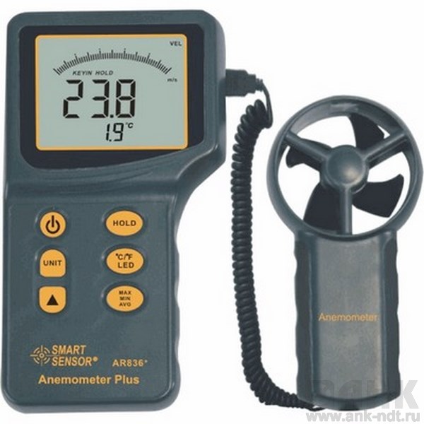 Цифровой анемометр AR836+ умеет измерять скорость ветра и температуру воздушного потока. Анемометр AR836+ оснащен функционалом для вычислений над полученными измерениями. Встроенный микропроцессор модели делает измерения анемометра особо точными. Сфера применения анемометра очень широка: энергетика, сталепрокат, нефтехимическая промышленность. Есть и прикладные сферы использования электронного анемометра AR836+, такие как яхтинг, гребные соревнования, исследования на сельхозугодьях. Многие отрасли нуждаются в таком инструменте, как измеритель скорости ветра. Анемометры последнее время стали применяться в рыбной промышленности, вентиляции, обрабатывающей промышленности, в проверке выхлопных и так далее.