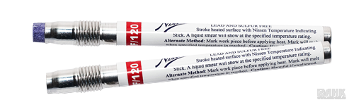 Существуют различные типы термокарандашей, с помощью которых можно определить температуру поверхности: до + 100 0С, до + 120 0С, до + 150 0С, до + 200 0С, до + 250 0С, до + 300 0С, до + 400 0С.