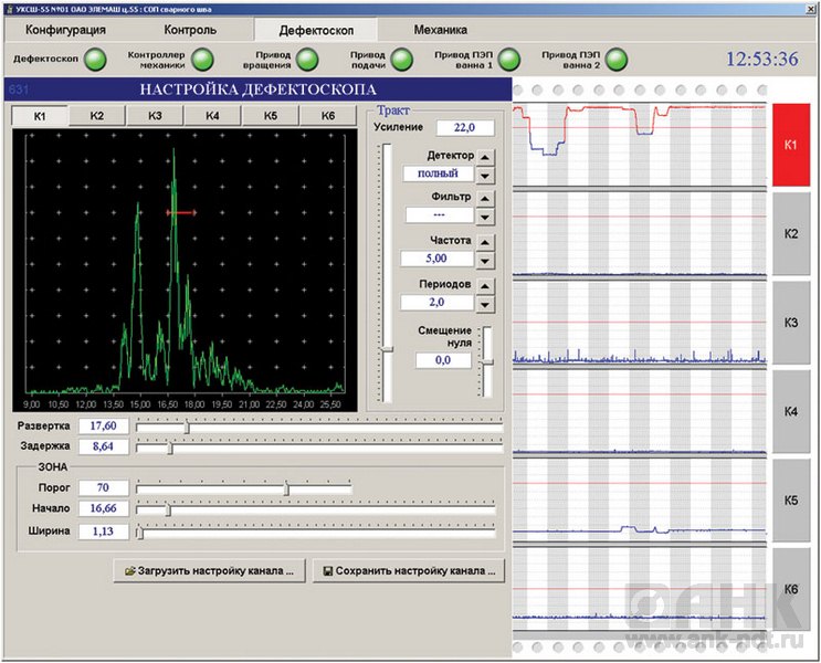 4 канала дефектоскопии + 2 канала позиционирования преобразователя