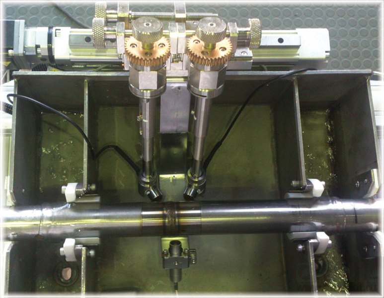 Установка предназначена для контроля качества кольцевых сварных соединений на трубах из нержавеющшей стали диаметром 36 мм с толщиной стенки 5 мм.