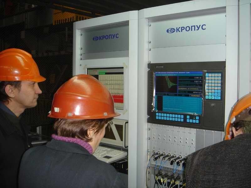 Электронная часть установки выполнена в 19" конструктиве в виде модульной системы на базе 8-ми канального дефектоскопа УПНК v.2
