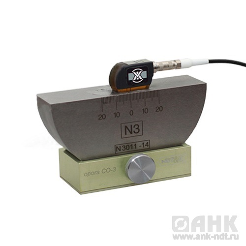Подставка OPORA-СО3 предназначена для жесткой фиксации положения стандартного образца СО-3 на рабочем месте. Подставка дает оператору неоспоримое удобство использования образца СО-3 при определении стрелы, задержки и резерва чувствительности наклонных преобразователей П121-ХХ-ХХ. Использование подставки устраняет раздражающий фактор пространственной неустойчивости образца СО-3.