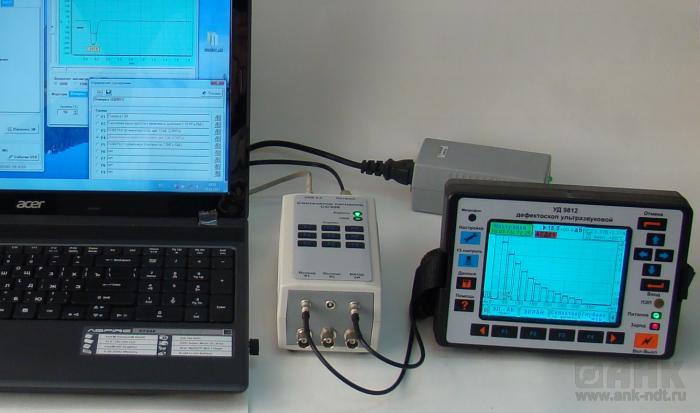 Управление процедурами измерений осуществляется через персональный компьютер. Если дефектоскоп имеет канал связи с компьютером, то возможно создание автоматизированной установки для настройки, калибровки или поверки, в которой весь процесс измерений происходит автоматически без участия оператора.