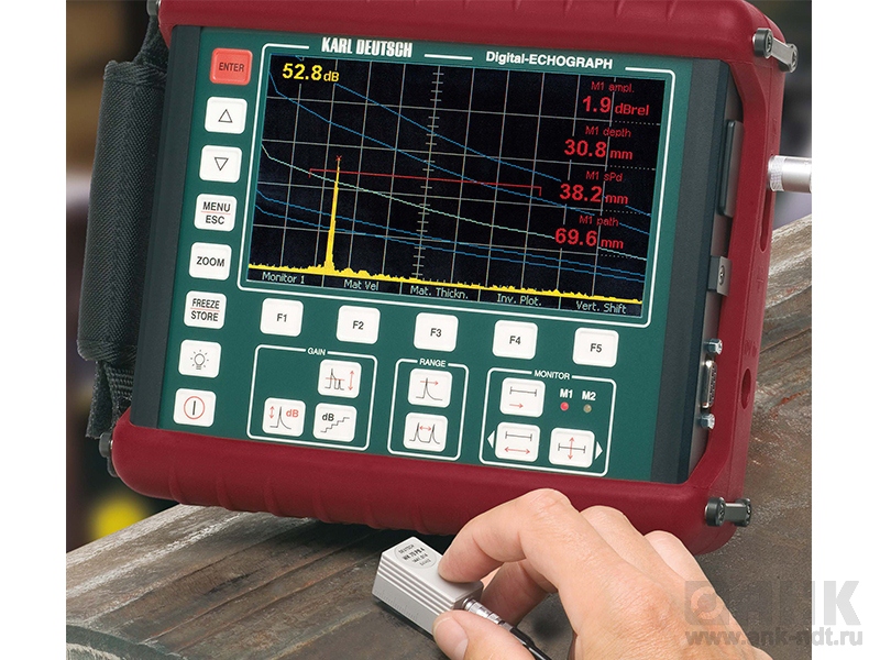- 1090 DGS/DAC– прибор с реализованной дополнительной функцией оценки эхо-сигнала по методу DGS (DGS, амплитуда-расстояние-диаметр)