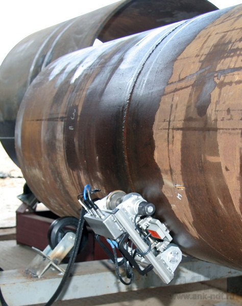 Восьмиканальный ультразвуковой сканер-дефектоскоп УСД-60-8K WeldSpector предназначен для высокопроизводительного ручного ультразвукового контроля сварных швов. Применение современных цифровых технологий позволяет данному ультразвуковому дефектоскопу контролировать сварные соединения со скоростью до 4м/мин. Применение различных сканеров позволяет строить наглядный С-скан сварного шва с точным определением координат дефектов. А мощные магнитные колеса и система слежения за акустическим контактом обеспечивают достоверность контроля и возможность без потери координаты вернуться в любую точку сварного шва. Расположение специальных 4-х канальных преобразователей по обе стороны сварного шва позволило обеспечить его контроль за один проход. Ультразвуковой дефектоскоп сертифицирован в Ростехрегулировании РФ (Свидетельство об утверждении типа средства измерения RU.C.27.003.A №39599 ), зарегистрирован в Государственном реестре средств измерений под №34808-10, имеет разрешение Ростехнадзора и рекомендован для применения на объектах ОАО "Газпром".