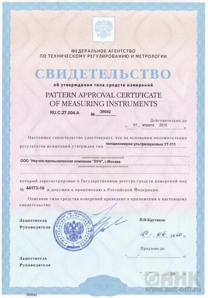 | Толщиномер ультразвуковой УТ-111. Руководство по эксплуатации ЛИВЕ.415119.030 РЭ | 1 экз. |
