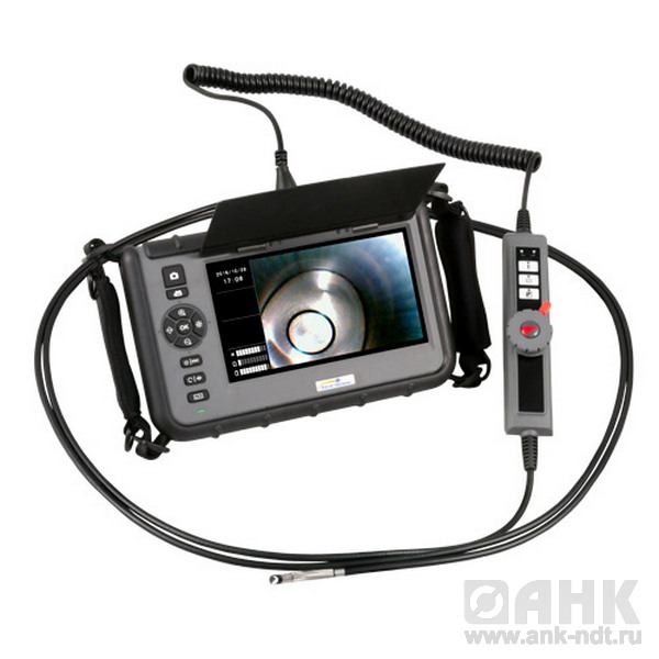 Технический видеоэндоскоп с зондом Hyperion улучшенного качества изображения - Прибор имеет зонд с управлением - Рабочая длина зонда составляет 3 метра, диаметр 6 мм - монитор 7 дюймов, один из самых больших в своем классе - регулировка подсветки в прямом направлении и поворот направления подсветки объекта на 90 град. - вращение изображения на 360 град. с шагом 90 град.