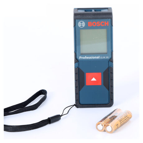 Компактные и лёгкий, дальномера позволяют всегда иметь его при себе, он не занимает много места в сумке с инструментами, кармане или бардачке автомобиля. Данная модель является одной из самых лёгких лазерных рулеток, представленных на рынке профессиональных дальномеров. Удобный мягкий чехол позволяет повесить лазерный дальномер на ремень. Питание Bosch GLM 30 осуществляется от двух стандартных батареек типа ААА. Одного заряда батарей достаточно для осуществления 5000 стандартных отдельных измерений.