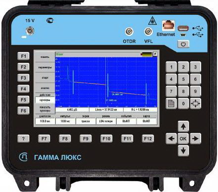 • «автоматические измерения»: просто нажать кнопку «старт» — прибор сам выставит нужные параметры, проведет измерения и покажет рефлектограмму с анализом технического состояния линии;