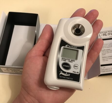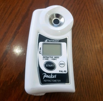 • Ручной цифровой рефрактометр PAL-RI. Нажмите кнопку START после того, как поместите несколько капель образца на призму, индекс рефракции nD (разрешение 0.0001) и температура измерения °C отразятся на дисплее. Он также оснащен всеми функциями рефрактометров серии PAL. Рефрактометр PAL-RI получил широкое применения для оценки качества подсолнечного масла, которое используют для лечения недугов по методу Н.В. Шевченко. Рефрактометр PAL-RI не имеет функции автоматической температурной компенсации: то есть измерения необходимо проводить при стандартной температуре для исследуемого образца: 20°C, 15°C или другой. Поверка рефрактометра PAL-RI осуществляется в аккредитованной лаборатории АНК и занимает от 1 до 5 дней.