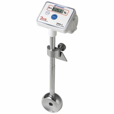 Погружной рефрактометр PAN-1 — это сочетание ценовой доступности и функциональности проточного рефрактометра. Иногда возникают ситуации, когда необходимо контролировать концентрацию образца именно в ёмкостях, у которых нет выходов на трубы, где можно бы было установить проточный рефрактометр. Как правило, в таких ёмкостях проводятся процессы разбавления, размешивания или концентрирования. В этих случаях Вы просто устанавливаете в ёмкость погружной рефрактометр PAN-1. Он идеально подходит для контроля брожения (пиво, вино и пр.), для кондитерских предприятий, для предприятий, которые изготавливают свой продукт методом разбавления из концентрата (например, приготовления столового уксуса). На экране прибора отображаются значения % Brix и фактическая температура продукта. Длина погружного штатива составляет 30 см. Поверка рефрактометра PAN-1 осуществляется в аккредитованной лаборатории АНК и занимает от 1 до 5 дней.