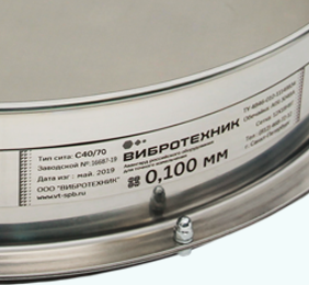 Маркировка сит выполняется методом лазерной гравировки. Сита С 40/70 могут использоваться в составе анализаторов ситовых, в тч анализатора ситового А 40 на базе вибропривода ВП 50, а также совместимы с виброприводами других производителей, рассчитанными на сита диаметром 400 мм (Retsch, Haver, Fritsch и др.)