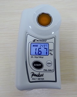 • PAL-SALT Mohr позволяет получать значения концентрации соли, согласующиеся со значениями, если бы они были получены методом Мора (титрования). Как и другие солеметры, PAL-SALT Mohr использует метод электропроводимости для измерения образцов. Этот прибор также имеет встроенную функцию оффеста, позволяющую выводить результаты с автоматическим вычислением поправочного коэффициента. Для калибровки или проверки точности работы солемера Вы можете приобрести ГСО «NaCl» номиналом 2,5%. Поверка солемера PAL-SALT Mohr осуществляется в аккредитованной лаборатории АНК и занимает от 1 до 5 дней.