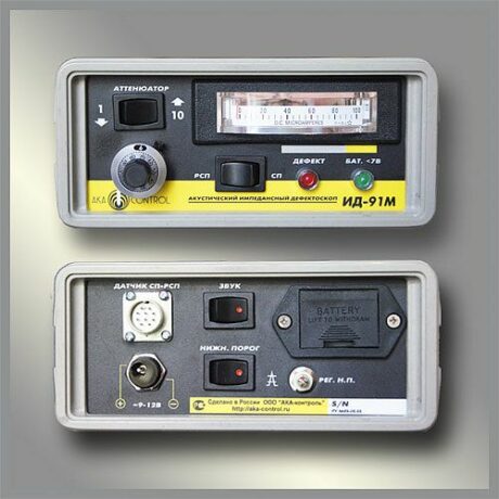 Акустический импедансный дефектоскоп ИД-91М предназначен для обнаружения расслоений и непроклеев в изделиях из слоистых пластиков и композиционных материалов. Дефектоскоп ИД-91М используется при производстве и эксплуатации авиакосмической техники. Принцип действия дефектоскопа — импульсный импедансный.