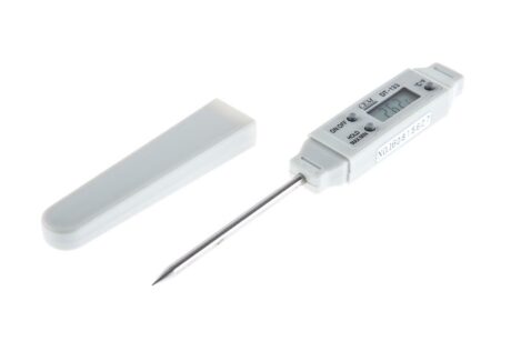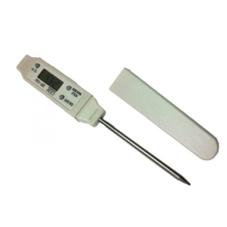 • Порядок работы. Для работы с термометром необходимо снять защитный чехол, нажать кнопку «ON/OFF» (Вкл. /Выкл.) и поместить щуп (не менее, чем наполовину своей длины) в измеряемую среду. На экране отображается текущее значение температуры среды измерения. Для увеличения реального срока службы батареи термометр автоматически выключается примерно через 45 минут.  Поверка термометра электронного DT-133 осуществляется в аккредитованной лаборатории АНК и занимает от 1 до 5 дней.